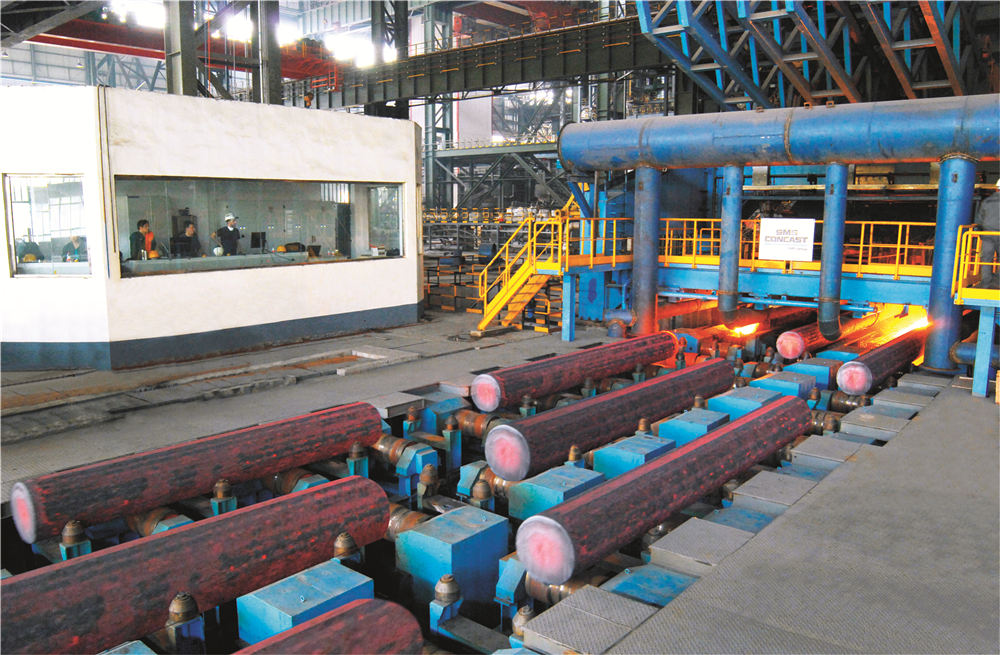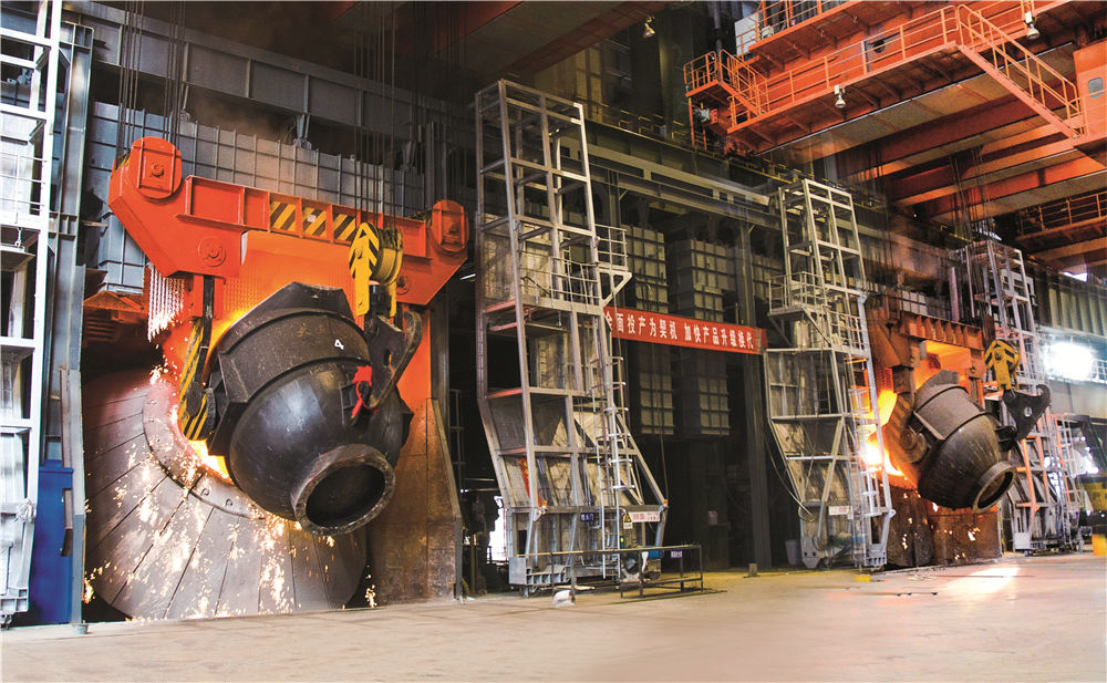 炼钢系统拥有1300吨混铁炉一座、120吨双工位KR脱硫装置一座、120吨顶底复吹转炉两座、60吨顶底复吹转炉两座、120吨LF精炼炉四座、120吨RH精炼炉两座、60吨LF精炼炉四座、合金熔化炉两座、60吨VD精炼炉两座,全球弧形半径最大,Φ500mm~Φ1300mm的特殊钢大圆坯连铸机,合金钢小方(圆)坯连铸机,合金钢大方(圆)坯连铸机(引进瑞士康卡斯特),八机八流、七机七流、六机六流、五机五流连铸机各一台,具备年产500万吨钢的生产能力。
