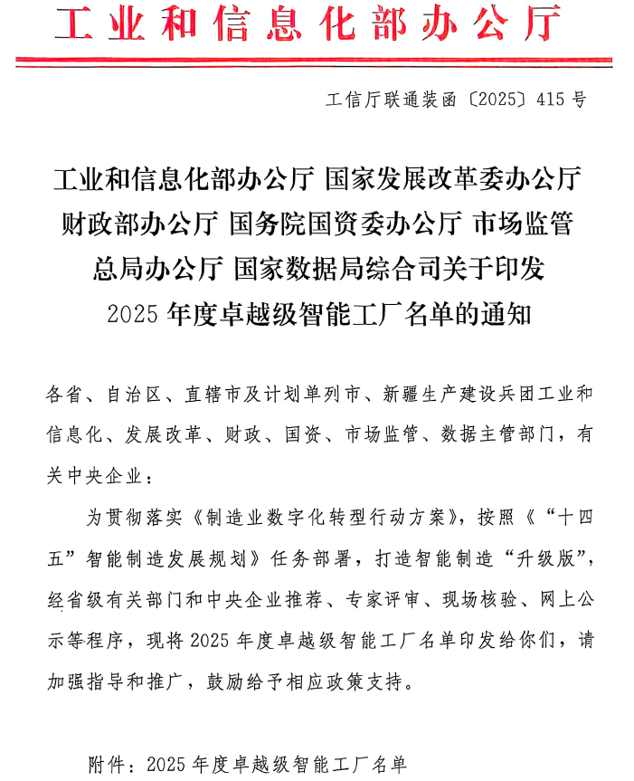 近日,工业和信息化部公示了2025年度卓越级智能工厂项目名单,完美平台成功入选,成为河南钢铁行业首家获此殊荣的企业,同时,在今年河南省入选国家卓越级智能工厂里排名第一,这一国家级荣誉标志着济源钢铁集团在智能制造和数字化转型领域处于国内领先、行业一流水平。